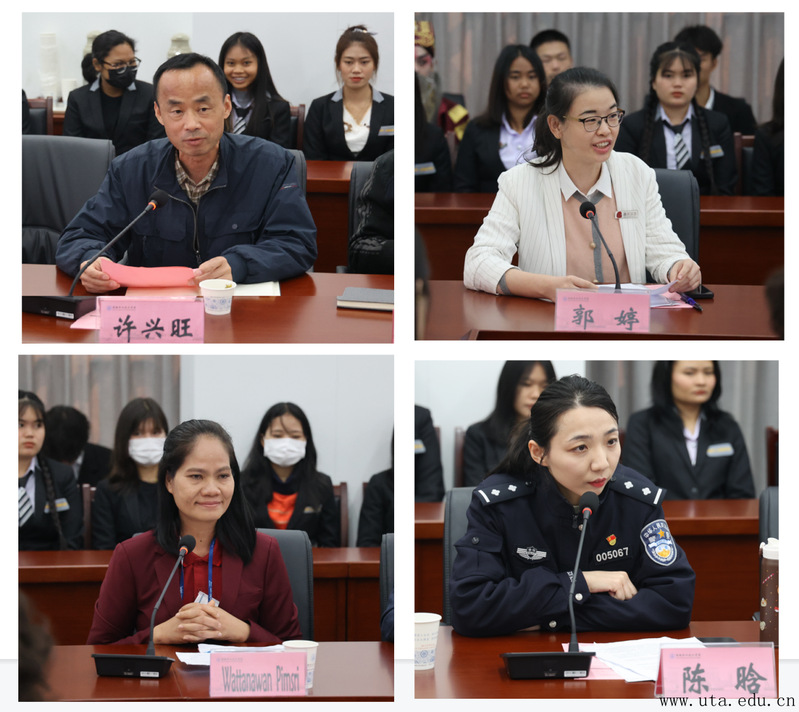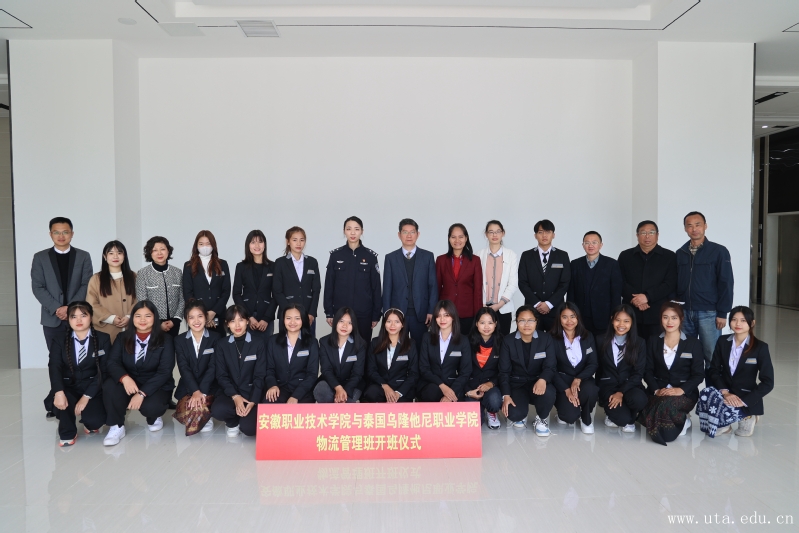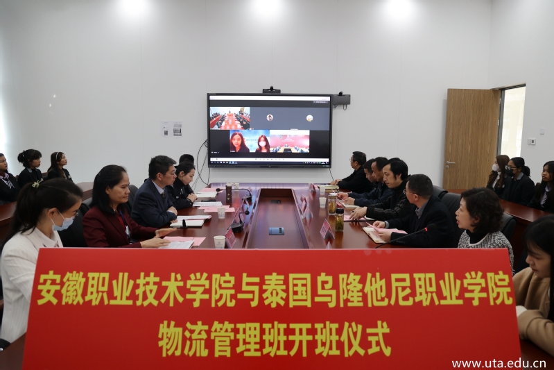 本网讯(外国语学院通讯员 冷慧勤)3月28日上午,2023年安徽职业技术学院与泰国乌隆他尼职业学院物流管理班开班仪式在至公楼举行。党委委员、副院长杨林国,乌隆他尼职业学院副院长萨迈·丝海补题,泰国唐风副总经理郭婷,合肥市公安局警官陈晗、袁家伟出席开班仪式。泰方物流系主任和学院学生处、保卫处、教务处、现代商务学院、文化与旅游学院相关负责人参加开班仪式。开班仪式由外国语学院副院长胡菁蕾主持。