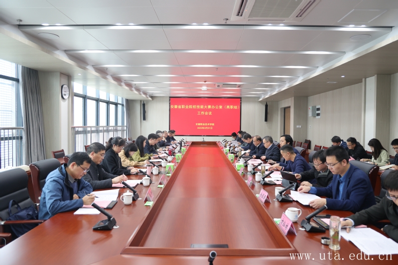 本网讯(教务处通讯员 汪志强)3月31日下午,安徽省职业院校技能大赛办公室(高职组)工作会议在学院至公楼第五会议室举行。省教育厅高教处副处长高原,省职业院校技能大赛(高职组)办公室全体人员及有关院校领导,学院党委书记李方泽,院党委副书记、院长盛鹏,院党委委员、副院长杨林国参加会议。会议由盛鹏主持。