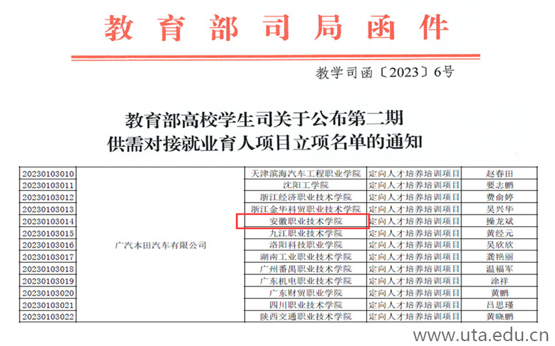 本网讯(汽车工程学院通讯员 操龙斌)为落实党中央、国务院“稳就业”“保就业”决策部署,深化产教融合、校企合作,推动人才培养与就业有机联动、人才供需有效对接,汽车工程学院与广汽本田汽车有限公司联合申报的定向人才培养培训项目成功获批。