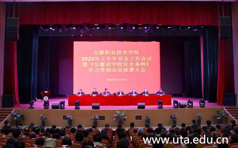 本网讯(保卫处通讯员 卫燕)4月12日上午,学院在大学生活动中心召开2023年上半年安全工作会议暨《安徽省学校安全条例》学习贯彻动员部署大会,学院领导班子成员出席会议,组织员、教学督导、中层干部、团总支书记、全体辅导员及相关部门人员参加会议。会议由党委副书记、院长盛鹏主持。