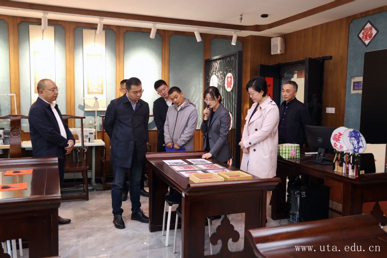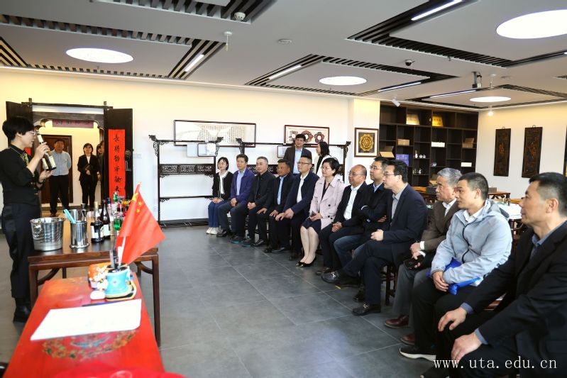 调研中,郑晋平一行参观走访了徽文化艺术研究中心,先后在剪纸馆、戏曲馆、傩文化馆、徽韵学堂等7个馆进行互动体验,感受“徽”文化的丰富含义和美好寓意。在徽韵学堂,文化与旅游学院酒店专业教师韩玮玮现场讲解并调制了融合中西方文化的“贵妃醉酒”鸡尾酒;在茶文化馆,2名酒店管理专业的学生现场展示了传统茶艺表演。