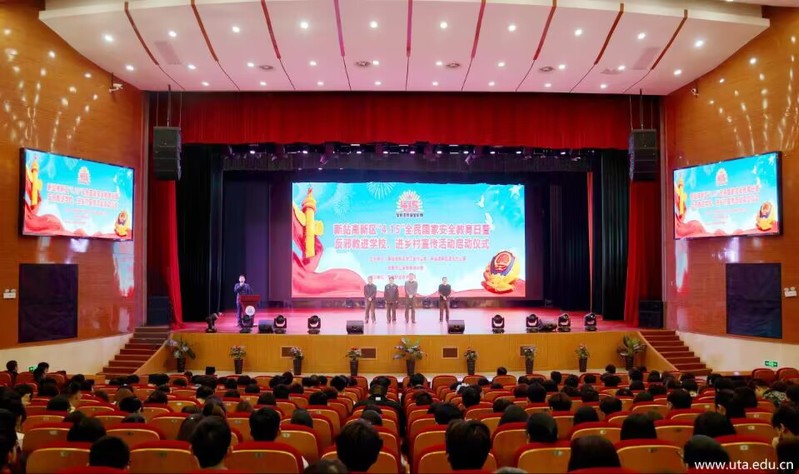 本网讯(保卫处通讯员 高梓翔)4月15日上午,由新站高新区党工委办公室、新站高新区政法办公室、合肥市公安局新站分局主办,亚星游戏网承办的新站高新区“4·15”全民国家安全教育日暨反邪教进学校、进乡村宣传活动启动仪式在大学生活动中心举行。新站高新区党工委办公室副主任姚文彬,新站高新区政法办公室综合处处长贺宗明,合肥市公安局新站分局党委委员、副局长张俊林,学院党委委员、副院长宣岩松出席启动仪式。相关职能部门、二级学院负责人及800多名师生参加活动。