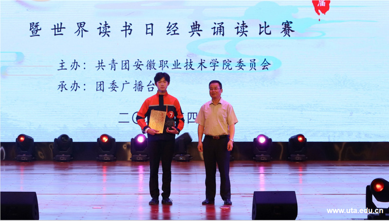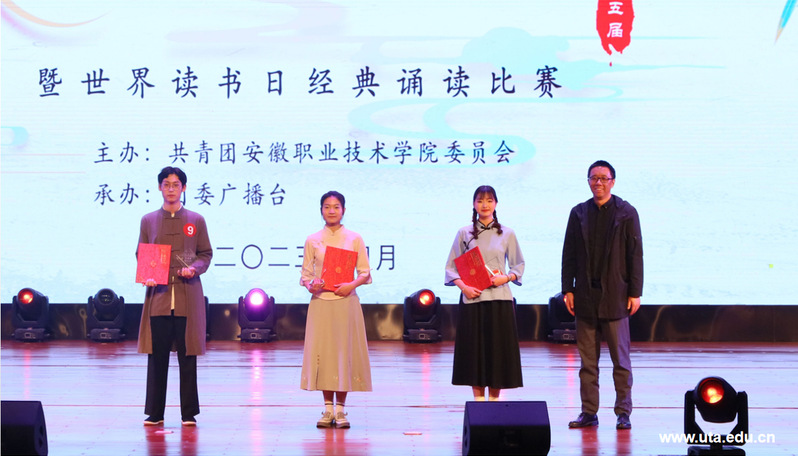 本网讯(团委通讯员 吕玥)春光美如斯,正是读书时。4月19日下午,第五届“新·朗读者”暨世界读书日经典诵读比赛在大学生活动中心成功举办,学院党委委员、副院长宣岩松到场指导,安徽中医药大学团委书记叶兰兰、安徽广播影视职业技术学院团委书记陈瑞鹏、合肥幼儿师范高等专科学校团委书记谢立松担任本次比赛评委。现场500多名师生观众共同观看比赛。