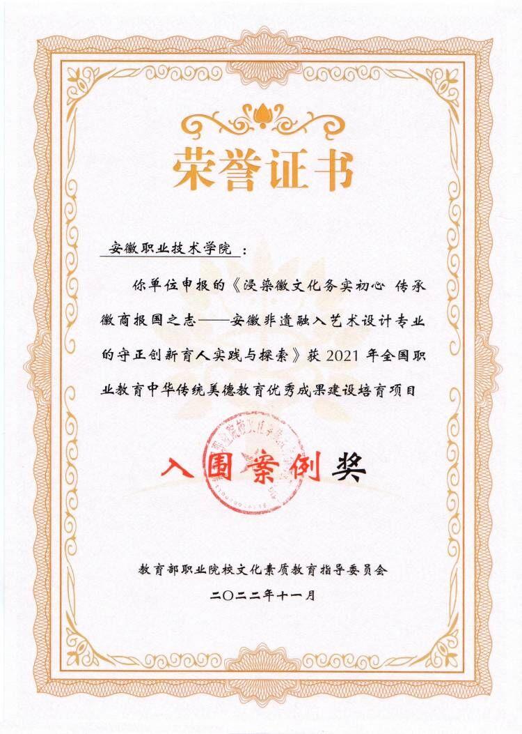本次项目申报立足徽文化传承与创新,充分挖掘、总结、提炼传承中华传统文化的亮点和做法,形象展示了极具特色的区域文化在大学校园中的弘扬与传播,凸显了亚星游戏网校园文化建设工作的新特点、新风貌、新进展。其中,许平山、俞海燕、张坛柳、任晓莉团队申报的《徽文化育人立德为本 中华经典润泽人生》获优秀品牌活动奖;俞海燕、曾宪锋、马扬梅、许平山团队申报的《浸染徽文化务实初心 传承徽商报国之志——安徽非遗融入艺术设计专业的守正创新育人实践与探索》入围案例奖;许平山、孙静、吴丰芳、洪啸锋团队申报的《新时代 中国梦 怀家园 勇担当 重创新 强创造——亚星游戏网植根于徽文化的育人探究与实践》获优秀成果奖。
