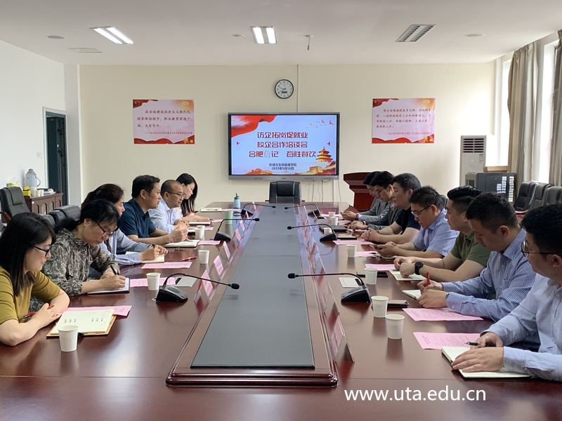 本网讯(环境与生命健康学院通讯员 张晓晴)5月16日上午,合肥市庐阳区人社局副局长林先超携手合肥詹记食品有限公司总经办主任张健、百胜餐饮(安徽)有限公司人力资源部经理郭一鸣等企业代表来院洽谈校企合作事宜。院党委委员、纪委书记李荣富出席会议,就业与创新创业指导中心副主任王乌兰,环境与生命健康学院党政负责人郝建文、宣凤琴、徐颢溪,食品教研室主任曹川及教师代表参加会议。会议由宣凤琴主持。