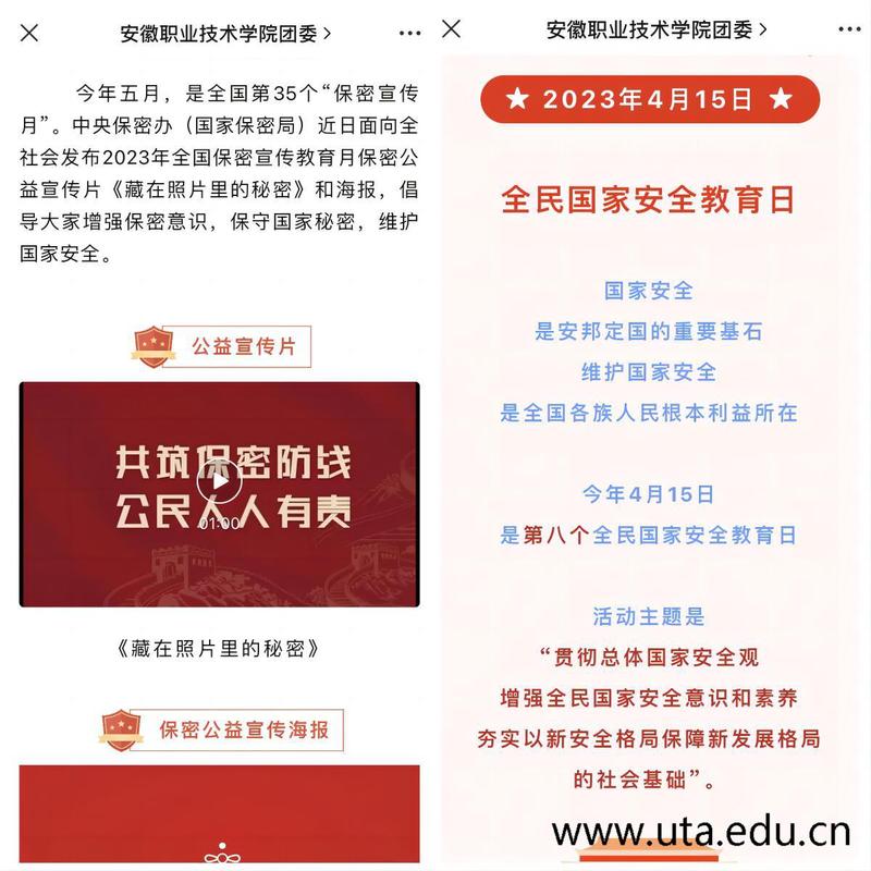 本网讯(团委通讯员 蒯月亭)为切实增强学生保密意识,维护国家安全和利益,推进学院全面依法治校,根据国家、省有关文件精神,结合学院保密教育工作部署安排,团委在将保密工作同日常业务工作同计划、同部署、同检查、同总结,进一步明确保密工作的具体要求,提高全体团学干部的责任意识的同时,积极开展了保密宣教“四大行动”,切实筑牢新时代维护党和国家秘密安全的人民防线。