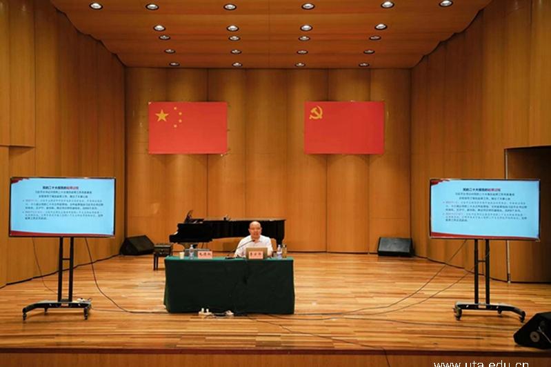 本网讯(办公室通讯员 张仁捷)为深入学习贯彻党的二十大精神,落实学习贯彻习近平新时代中国特色社会主义思想主题教育要求,5月19日下午,学院党委书记李方泽赴安徽艺术职业学院作题为《学深悟透党的二十大精神 推动职业教育高质量发展》的宣讲报告。安徽艺术职业学院全体院领导、中层干部、教职工党员,思政课教师、辅导员、学生党员代表参加报告会,会议由安徽艺术职业学院党委书记毛德权主持。