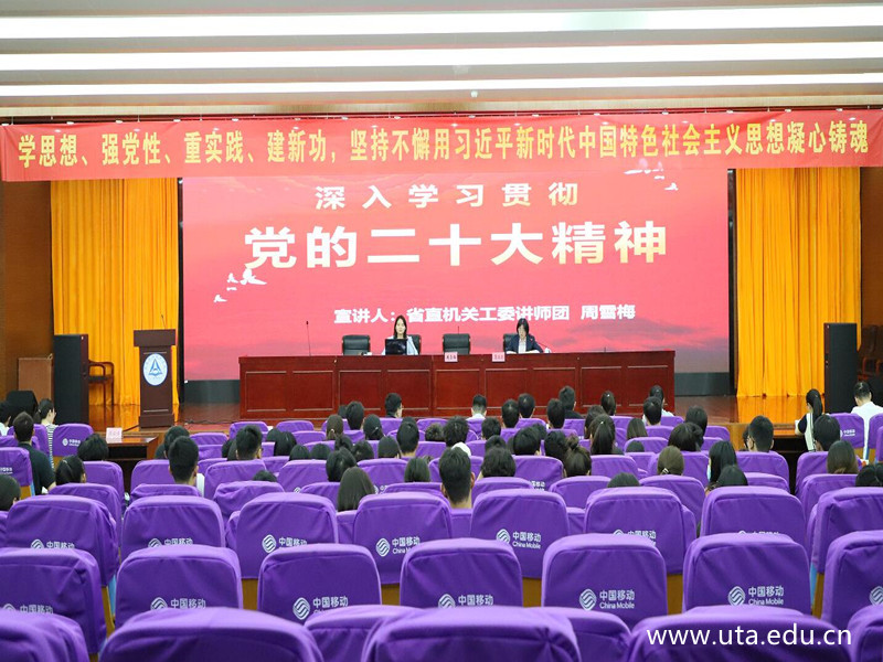 本网讯(团委通讯员 范海宁)为深入学习贯彻习近平新时代中国特色社会主义思想和党的二十大精神,扎实推进主题教育,持续为学院改革发展贡献共青团力量。5月25日,省直机关工委讲师团成员周雪梅应邀为第21期“青马工程”学员讲授主题教育专题党课暨党的二十大精神宣讲。