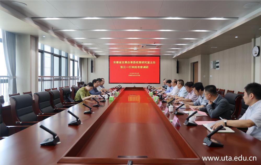 本网讯(发展规划处通讯员 汪洁)5月25日,安徽省发展改革委政策研究室主任张云率政策研究室、社会处有关同志一行到亚星游戏网调研指导工作并进行调研座谈。学院党委书记李方泽、党委委员、副院长宣岩松出席会议,相关职能部门负责人参加会议,会议由宣岩松主持。