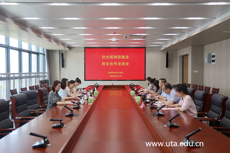 本网讯(环境与生命健康学院通讯员 孙艳华)为进一步落实访企拓岗促就业专项行动工作要求,提升学生职业能力,促进学生高质量就业,6月1日,环境与生命健康学院邀请安徽省先锋制药有限公司副总经理何川兰、安徽国胜大药房连锁有限公司人力总监樊晓蓉、合肥欧创基因生物科技有限公司人力资源部负责人李珍珍等企业代表来院洽谈校企合作事宜。院党委委员、副院长宣岩松出席会议,环境与生命健康学院党政负责人郝建文、宣凤琴,药品教研室主任孙艳华及教师代表参加会议。会议由宣凤琴主持。