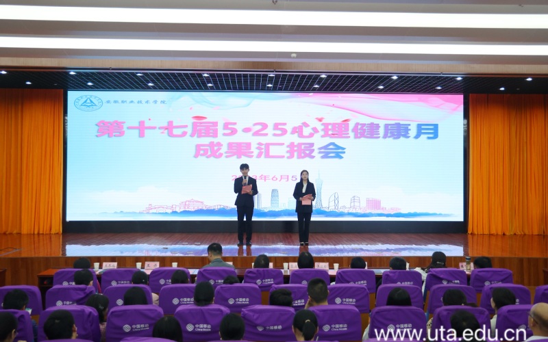 本网讯(学生处通讯员 朱艳丽 萧潇)6月5日,学院举办第十七届5·25心理健康月成果汇报会。学院党委委员、副院长宣岩松出席会议,学生处、团委负责人,各二级学院党政负责人、团总支书记、专职辅导员、心理健康教育中心专职教师、班级心理委员代表、心语协会成员等300余人参加会议。