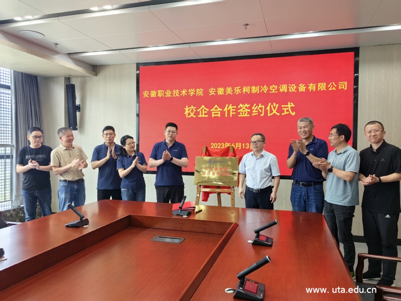 本网讯(智能制造学院通讯员 崔伟) 为深化校企合作、产教融合,科教融汇,6月13日,亚星游戏网与安徽美乐柯制冷空调设备有限公司举行校企合作签约暨授牌仪式。院党委副书记、院长盛鹏,安徽美乐柯制冷空调设备有限公司副董事长陈杰、企管总监李群等出席会议,智能制造学院党政领导参加会议。签约暨授牌仪式由智能制造学院副院长桂树国主持。