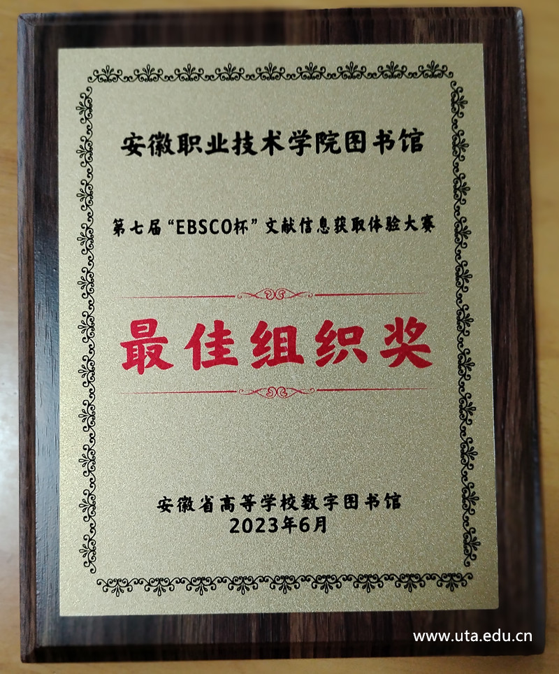 在由安徽省高等学校数字图书馆与EBSCO数据库联合举办、学院图书馆组织参与的第七届“EBSCO杯”文献信息获取体验大赛中,亚星游戏网学生刘玉良获安徽省高职组二等奖,王梦奇、刘梦、吴晓鹏同学获安徽省高职组三等奖,教师胡静获优秀指导教师奖。此次活动不仅提高了同学们的外文文献获取能力,同时提升了读者整体信息素养水平。学院图书馆积极组织,参赛人数飞跃式上升,参与师生达300多人,学院图书馆获优秀组织奖。