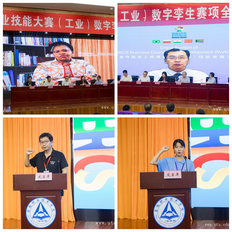 会上,2023年金砖职赛南非组织方代表(金砖国家工商理事会技能发展工作组主席)马普勒·恩坎瓦和金砖国家工商理事会(中方)技能发展工作组组长刘振英博士分别以视频形式向大会开幕式致辞。随后,大赛裁判员代表和参赛选手代表进行了宣誓,崔雪艳宣布金砖国家职业技能大赛开幕。