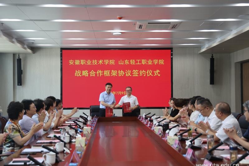 会上,学院与山东轻工职业技术学院举行签约仪式,正式签署两校战略合作框架协议。