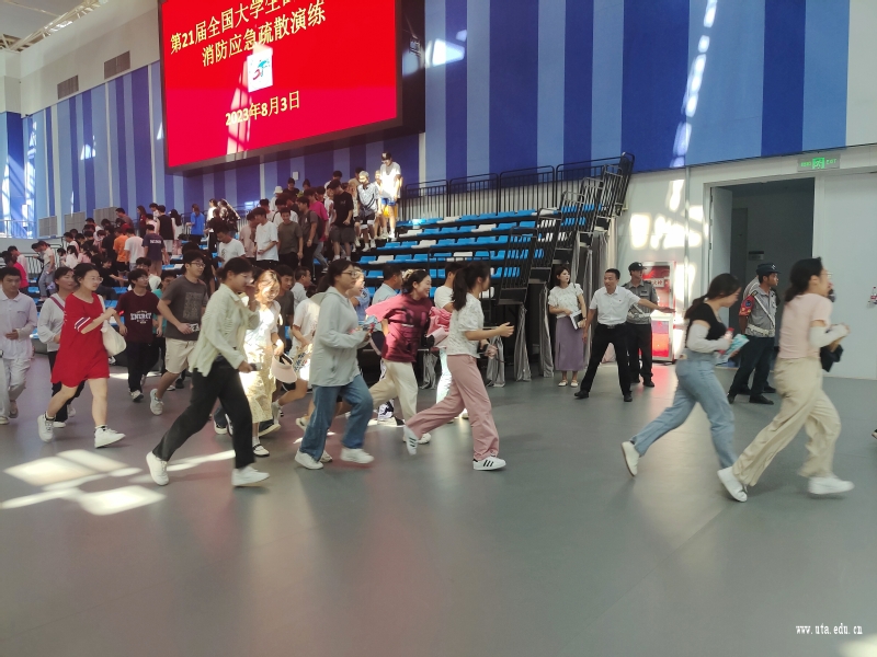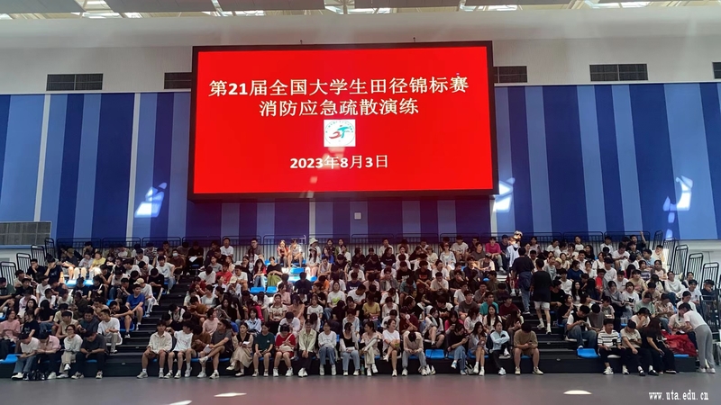 本网讯(保卫处通讯员 徐朔)为进一步落实学院安全工作要求,提高师生对突发事件的应急处置能力,全力保障第21届全国大学生田径锦标赛平稳有序进行,8月3日下午,学院举行第21届全国大学生田径锦标赛消防应急疏散演练。学院党委委员、副院长宣岩松,磨店派出所副所长朱安明、学院保卫处负责人李仿民,安保团队公司副总经理洪先明、汪小翠,运营部副部长王俊杰,保卫处、团委、体育健康学院、医务室、安保团队、保安公司驻校保安队、大田赛志愿者等440余人参加本次演练。