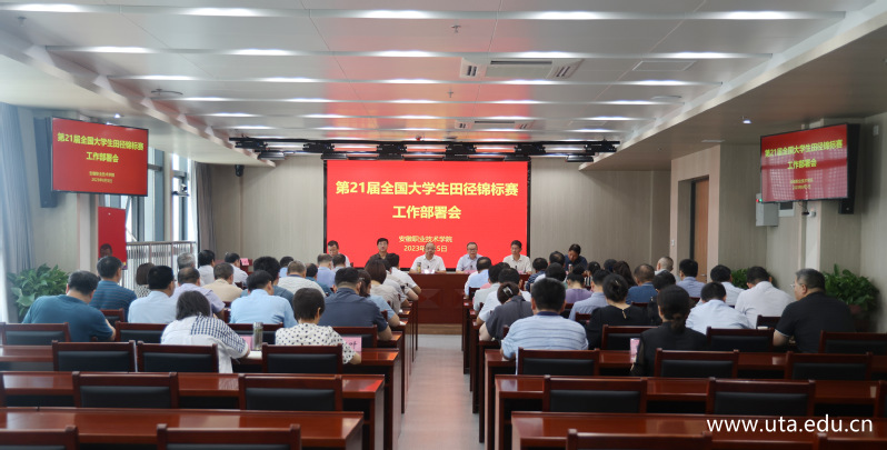 本网讯(党委宣传部通讯员 叶惠玲)8月5日,学院召开第21届全国大学生田径锦标赛工作部署会。学院领导班子成员、各职能部门主要负责人、各二级学院党政主要负责人参会。会议由党委副书记、院长盛鹏主持。