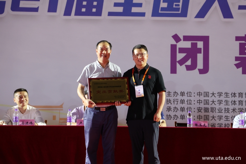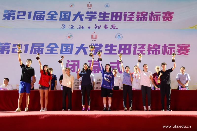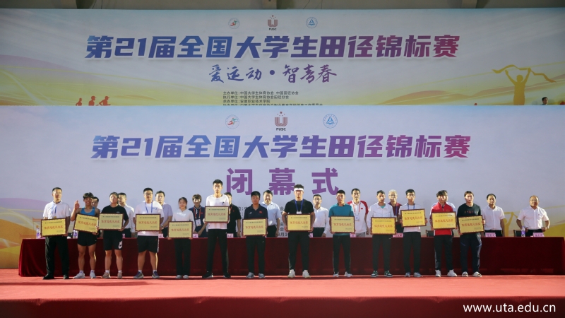 中共安徽省委教育工委委员、安徽省教育厅副厅长解平,福建省南平市政府副市长林湫,中国大学生田径项目主管张玉龙,中国大学生体育协会田径分会秘书长刘波,中国大学生体育协会田径分会副秘书长杜超,中国大学生体育协会田径分会裁判工作部主任吴铁桥,安徽省教育厅办公室主任卢鹏,合肥市教育局党委书记、局长刘业勋,合肥市新站高新区管委会党工委委员、副主任马进伟,安徽省教育厅体卫艺处副处长葛德连,安徽省教育厅学校安全管理处副处长储修杰,亚星游戏网党委书记李方泽出席闭幕式并为获奖高校颁奖。亚星游戏网党委副书记、院长盛鹏主持仪式。