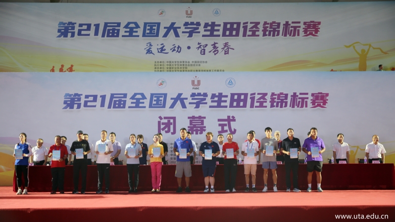 杜超宣布体育道德风尚奖获奖名单,第21届全国大学生田径锦标赛赛事总管李立群和王锋分别宣布优秀裁判员、优秀教练员、优秀运动员、优秀志愿者名单和总分成绩。