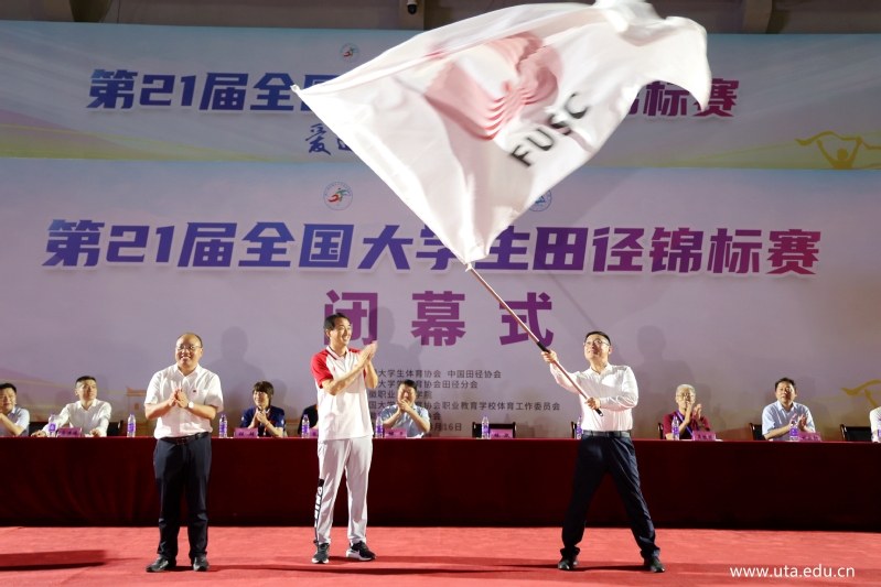 闭幕式上还进行了会旗交接仪式,下一届全国大学生田径锦标赛将在福建省南平市举行。