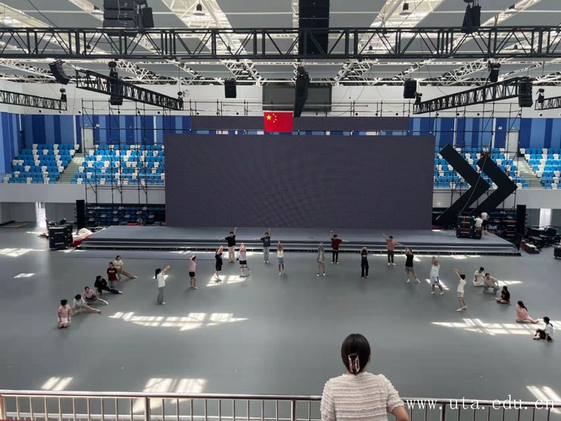 本次开幕式参与师生演职人员共计400余人,8月1日,全体演员就位,按照导演组制定的联排、彩排的详细计划,进入最后冲刺阶段,每一位参与者全力以赴,努力为全国观众奉献精致大气的华彩篇章。“演员要注意表情管理,动作要再熟练一些,集体舞动作再要整齐一些...”陈国玖导演对节目内容编排、造型设计等进行认真点评和指导,随后各节目进行细抠打磨。从8月2日到8月8日这样的排练、联排、彩排,在正式演出前,累计进行了近10次。8月7日晚,学院党委书记李方泽、院长盛鹏等校领导亲临联排现场,从演员入场到节目背景视频与节目的锲合度等方面进行了细致地指导,节目组加班加点连夜调整改进,确保整台节目最后彩排、演出高质量呈现。