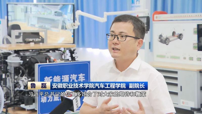 鲁磊在接受《安徽新闻联播》采访时表示,习近平总书记的信饱含了对人民教师的期待和鞭策,我们将坚持“勤学笃行 求是创新”的躬耕态度,培养出更多知行合一见真章的高素质技术技能人才。9月7日,省委书记韩俊来亚星游戏网看望慰问教师并调研教育工作,韩俊书记勉励广大教师牢记为党育人、为国育才使命,立德修身,潜心从教,做学生为学、为事、为人的示范,当好学生成长的引路人。作为一名人民教师,在工作过程中将满怀“心有大我、至诚报国”的理想信念,坚持“勤学笃行、求是创新”的躬耕态度,始终秉持“既要教书又要育人,既要搞好教学又要加强科研,既要做好校内工作又要积极服务社会”;不断引导学生积极践行“穿上工装开机床,知行合一见真章;匠心怀德入职场,报党报国报家乡”,为经济社会高质量发展培养更多高素质技术技能人才、能工巧匠、大国工匠。