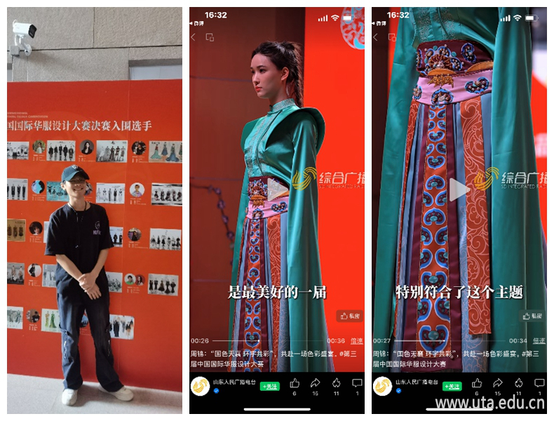 暑假期间,付志坤不畏酷暑,在指导老师郝文洁、魏迎凯及辅导员姜玮的帮助下,完成了四套服饰的实物制作及一套数字虚拟仿真服饰制作,于9月3日赴济南参加决赛并获得优秀奖的好成绩。参赛期间多家媒体跟踪采访报道。