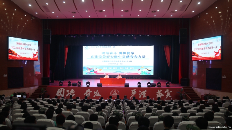 本网讯(马克思主义学院通讯员 马争婧 叶惠玲)为深入学习宣传贯彻党的二十大精神,引领广大青年听党话、跟党走,锤炼责任担当,引导学生在新学期积极践行社会主义核心价值观,做有理想、有本领、有担当的新时代青年,9月13日,学院党委书记李方泽以《团结奋斗 勇担使命 在建设美好安徽中贡献青春力量》为题,为2023级新生代表、全体思政课教师和全体专职辅导员上了一堂精彩生动的思政课。思政第一课由党委委员、副院长宣岩松主持。