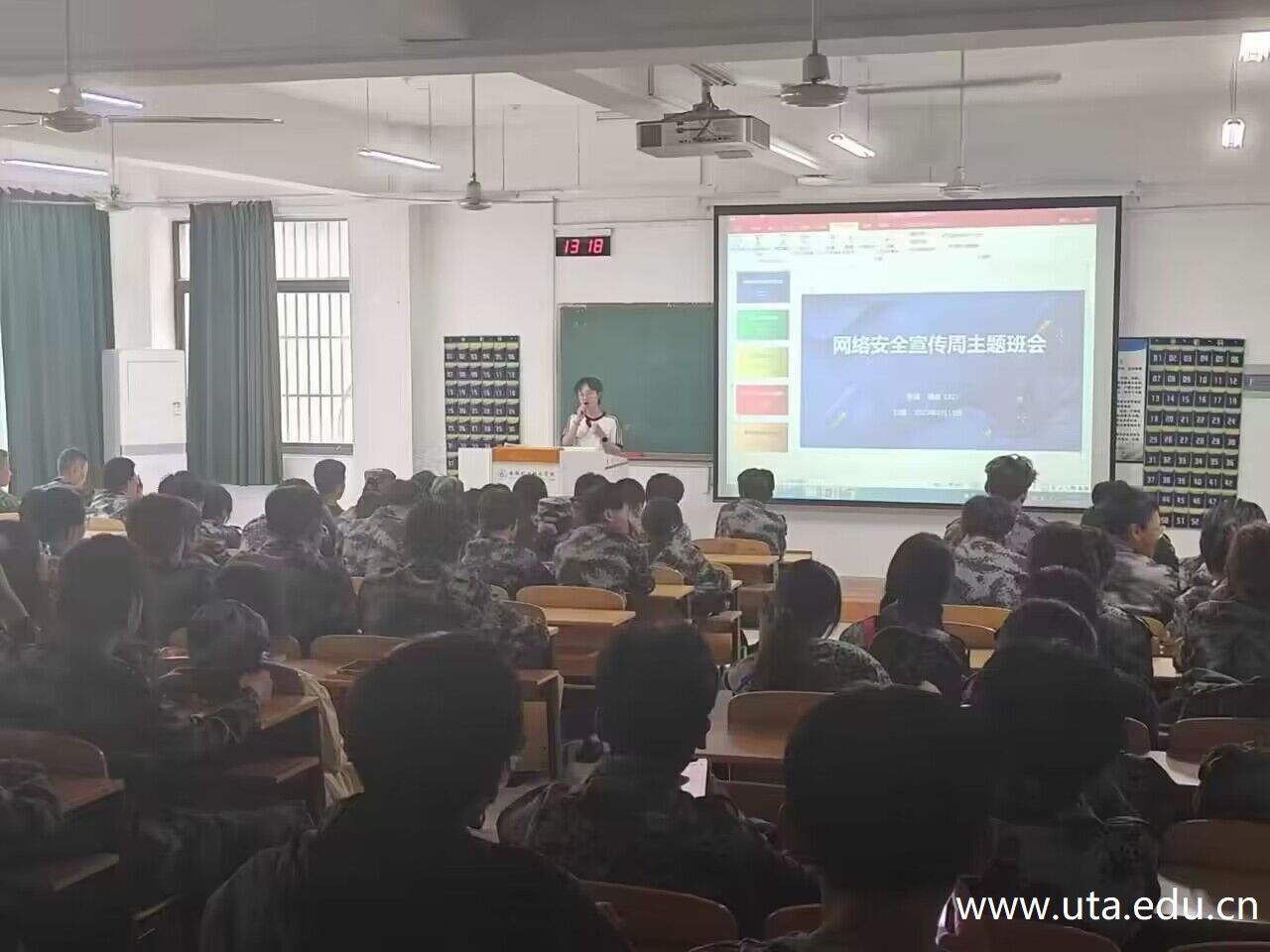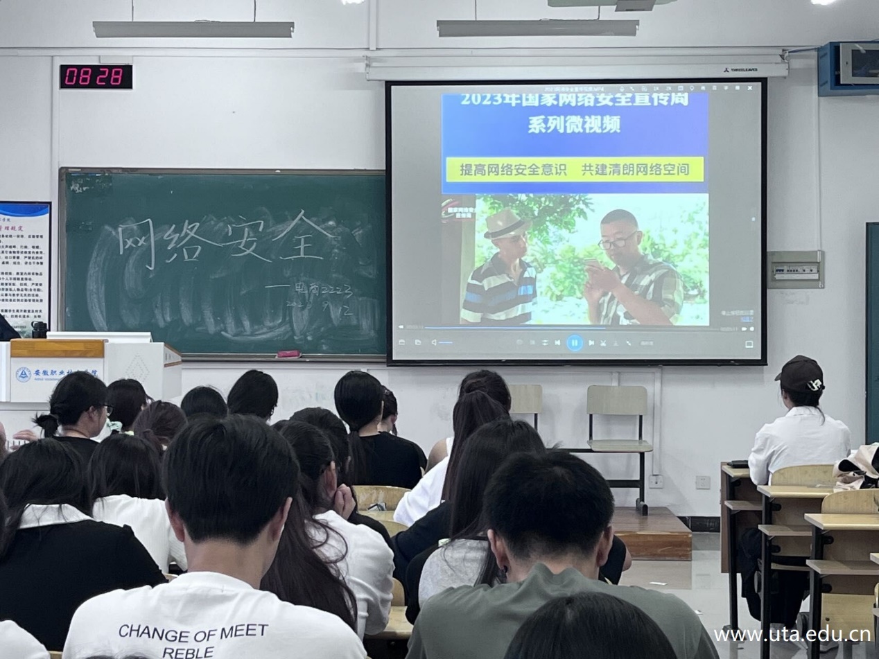 营造活动氛围,丰富宣传形式。一是通过“中国大学生在线”微信公众号平台,组织各二级学院学生积极参加全国大学生网络安全知识竞答、大学生网络素养能力提升大课堂学习。二是以网络安全宣传周“校园日”为契机,组织开展宣传周签名倡议活动,通过宣传展板、横幅标语、网络安全专题网站、校园电子大屏轮播网络安全知识。校园调频广播定时播报网络安全知识,提醒学生谨防网络陷阱,注意保护个人信息安全。三是邀请网络安全行业专家走进校园,通过专场讲座形式普及网络安全相关知识及法律法规,讲授网络安全防护技能。四是组织各二级学院学生参观网络安全教育科普基地。