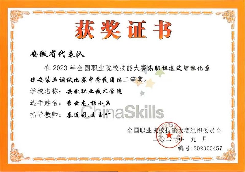 本网讯(智能制造学院通讯员 秦连好)9月18日至21日,2023年全国职业院校技能大赛高职组“建筑智能化系统安装与调试”赛项在黑龙江建筑职业技术学院举行。来自全国70多所高职院校的102支参赛队伍同台切磋技艺,经过激烈角逐,亚星游戏网李云龙、杨小兵两位同学发挥出色,荣获全国二等奖。
