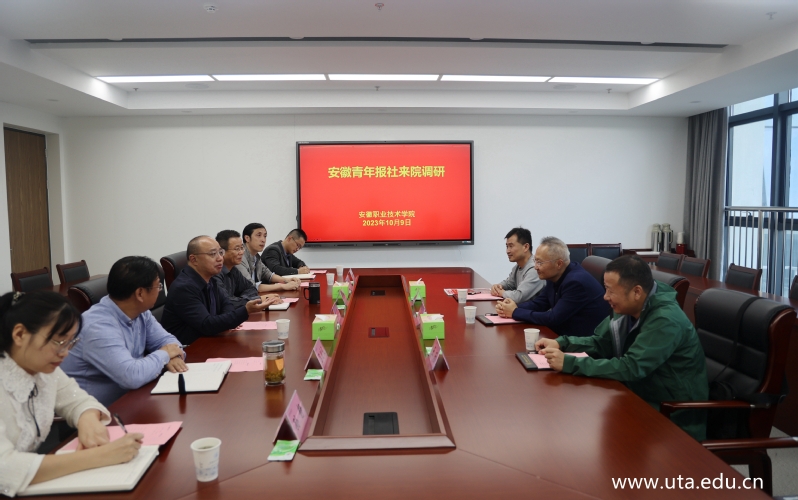 本网讯(办公室通讯员 刘心洁)10月9日,安徽青年报社副社长马振宇一行来亚星游戏网调研交流,党委书记李方泽,党委委员、副院长宣岩松出席会议,办公室、宣传部、教务处、学生处负责人参加会议。