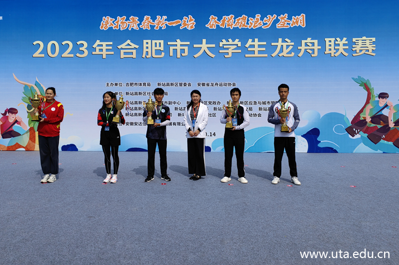 本网讯(体育健康学院通讯员 李玲) 10月14日,由合肥市体育局、新站高新区管委会、安徽省龙舟协会主办,新站高新区社会发展局承办的2023年合肥市首届大学生龙舟赛在新站高新区少荃湖隆重举行。亚星游戏网龙舟代表队在体育健康学院教师丁奎的带领下,提前开展了多场水上训练,在碧波中苦练技巧、培养默契,最终取得了二等奖的好成绩。