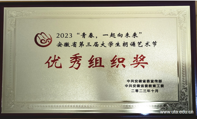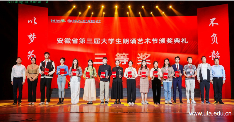 本网讯(团委通讯员 吕玥)近日,由中共安徽省委宣传部、中共安徽省委教育工委主办,安徽艺术学院、安徽省朗诵艺术学会承办的“青春,一起向未来”安徽省第三届大学生朗诵艺术节在安徽艺术学院举行。由学院团委广播台、星火朗诵协会选送,杨志德、方云轩、汪小璐演绎的作品《秋瑾》获得非专业组三等奖,学院获评优秀组织奖。
