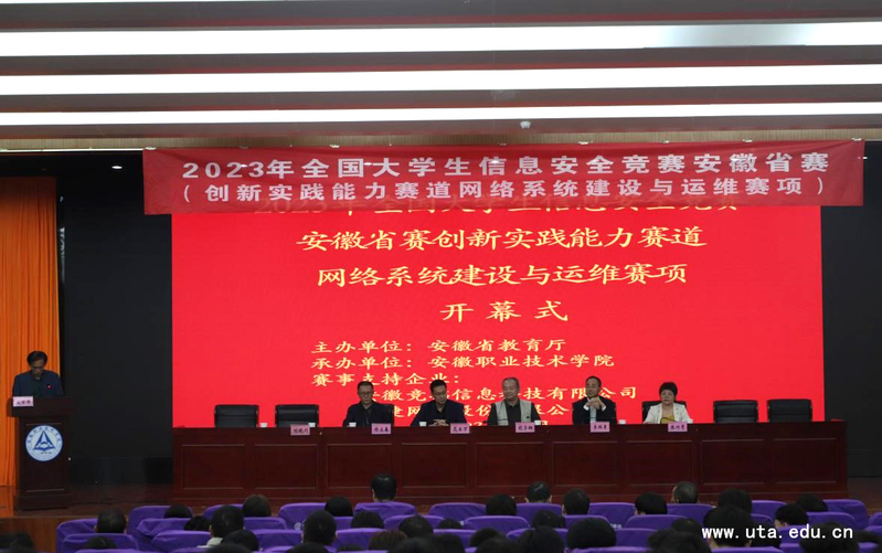 本网讯(计算机与信息技术学院 周润民)10月28日,由安徽省教育厅主办、亚星游戏网计算机与信息技术学院承办的2023年全国大学生信息安全竞赛安徽省赛(创新实践能力赛道网络系统建设与运维赛项决赛)在亚星游戏网成功举办。来自全省30所高职类院校,58支参赛队伍同台竞技,展开激烈角逐。 院党委委员、组织部部长李瑞勇,计算机与信息技术学院院长刘晓川、党总支副书记王丹、副院长李军,相关工作人员、志愿者参加大赛开幕式并全程做好服务保障工作。