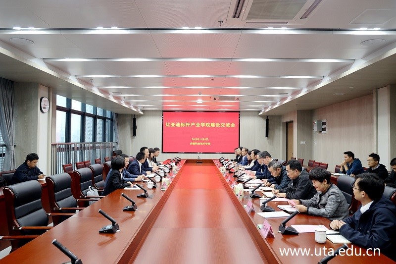 本网讯(汽车工程学院通讯员 沈通)为进一步深化产教融合,服务国家新能源汽车战略,服务地方经济发展,11月9日,比亚迪股份有限公司华东区人事总监陈武军、华东区人事科科长钟栏、风向标产教融科教有限公司总经理荣维涛等一行到访我校,就比亚迪标杆产业学院建设开展交流洽谈。学院党委副书记、院长盛鹏,党委委员、副院长杨林国,教务处、发展规划处、就业与创业中心,新能源汽车产业集群相关学院负责人及教师代表出席会议。会议由杨林国主持。