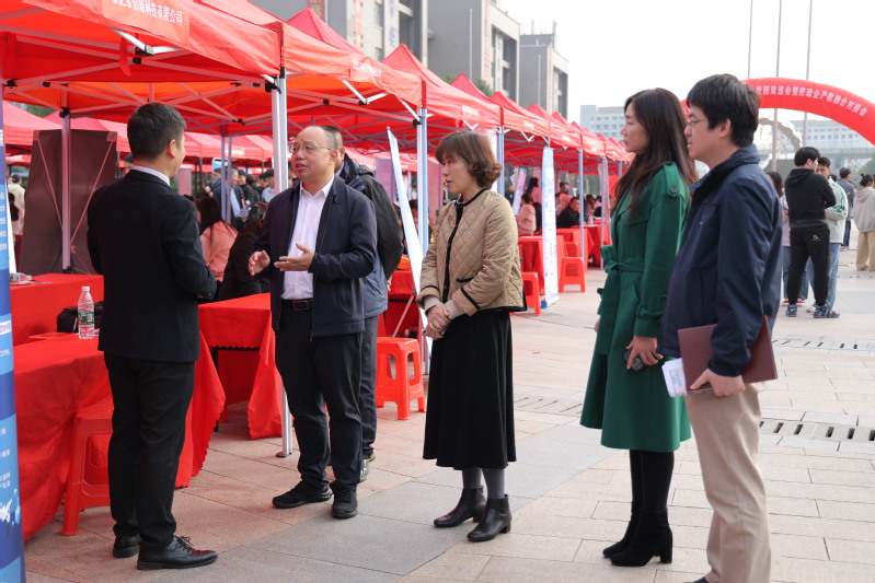 本网讯(就业与创新创业指导中心通讯员 傅峙)为促进毕业生高质量充分就业,助力新站高新区企业招才引智,服务辖区经济社会发展,11月15日,学院举办2023年秋季新站高新区“合肥千企万岗请您来”招才引智活动专场招聘会。院党委书记李方泽,院党委委员、副院长宣岩松,合肥新站高新区人才服务中心主任李慧洁等领导到现场指导工作。就业与创业创新指导中心、教务处负责人,二级学院党政负责人、毕业班辅导员、就业与创业创新指导中心工作人员到现场指导学生应聘。