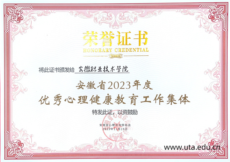 本网讯(学生处通讯员 萧潇)11月18日至19日,安徽省心理咨询师协会第三次会员代表大会暨2023年学术年会在芜湖召开。经过大会评选,学院荣获“安徽省2023年度优秀心理健康教育工作集体”荣誉称号。