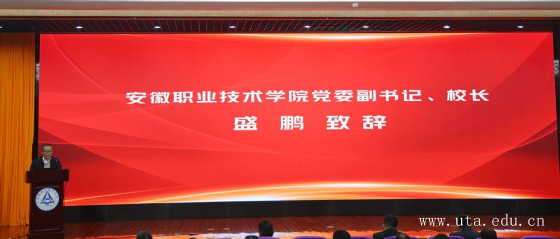 盛鹏代表学院对各位领导和嘉宾的到来表示热烈地欢迎。他就学院近年来发展情况及取得的各项成绩进行了简要介绍,着重就学院在推进产教融合,助力区域经济高质量发展等方面的主要做法和成效进行了总结和分享。他指出,未来,双方将持续深化交流合作,共同以“职业教育之力”厚植现代化美好安徽之基,助推学院内涵建设,不断提升学院在本区域内的影响力,推进我省职教高考制度改革实践,开启职业教育崭新未来。