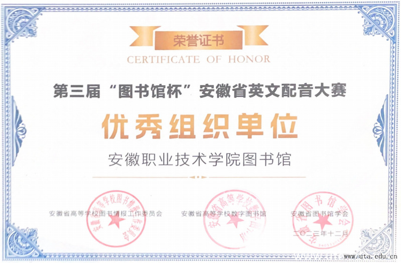 本网讯(图书馆通讯员 陈茂 外国语学院通讯员 冷慧勤 梁静)近日,2023“图书馆杯”安徽省英文配音大赛总决赛落下帷幕。此次比赛由安徽省高等学校图书情报工作委员会、安徽省高等学校数字图书馆主办,安徽省各高校图书馆联合组织,阅途集团承办,MET外国语言学习馆提供平台支持。本次大赛主题为“融汇中西 · 放声世界”,大赛共吸引了全省2046组队伍,共计配音作品合计1167件。外国语学院梁静老师指导的党务工作2221班付夏蕊的“海底小纵队”获得本次大赛高职组“二等奖”,亚星游戏网图书馆荣获“优秀组织单位奖”。