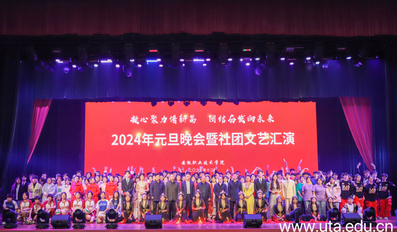 晚会在歌曲《相亲相爱》热烈的氛围中圆满结束,此次晚会包含唱跳、情景表演、服装秀、群口相声、小品、歌舞等多种形式。师生广泛参与,表演主题鲜明,形式新颖独特,反映了时代精神,传播了安职文化,为全体师生呈现一场视听盛宴的同时,更润物无声启迪思想。展望2024年,全体安职人将继续用奋斗与拼搏绘就学院高质量发展壮美画卷,用厚植与深耕续写职教本科建设时代强音,用青春的能动力和创造力为打造“三地一区”、建设“七个强省”注入强劲安职动能。