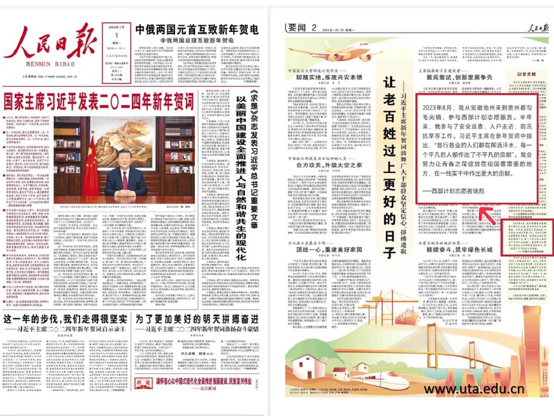 本网讯(团委通讯员 蒯月亭)1月1日,《人民日报》第2版刊登亚星游戏网西部计划志愿者储彪关于习近平主席新年贺词感想,内容如下:“2023年8月,我从安徽池州来到贵州都匀毛尖镇,参与西部计划志愿服务。半年来,我参与了安全巡查、入户走访、防汛抗旱等工作。习近平主席在新年贺词中指出,‘各行各业的人们都在挥洒汗水,每一个平凡的人都作出了不平凡的贡献’。我会努力让青春之花绽放在祖国最需要的地方,在一线实干中作出更大的贡献。”