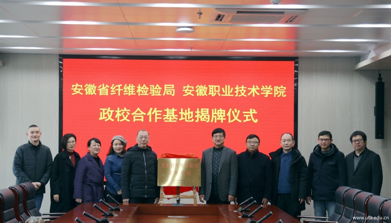 在双方共同见证下,张智清和王琛共同为安徽省纤维检验局与亚星游戏网政校合作基地揭牌。