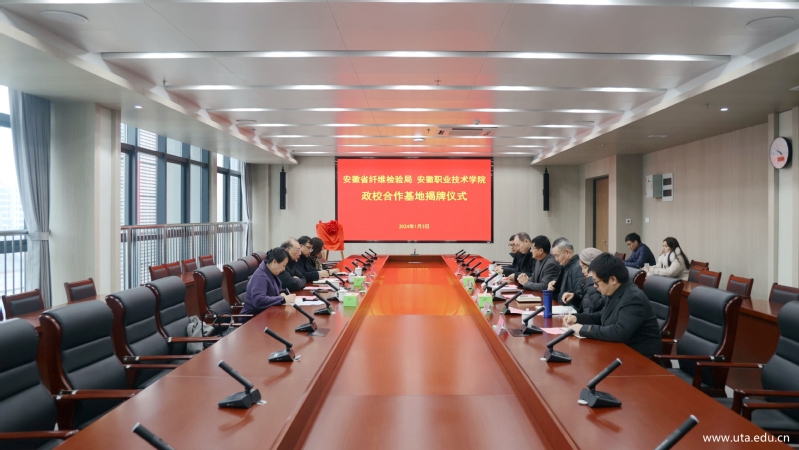 仪式上,张智清对王琛一行的到来表示感谢,并致欢迎辞。他指出,学院近年来不断加强内涵建设、深化教学改革,积极推动产学研结合,与各行各业开展了广泛合作,形成了“一链、两群、三对接、四融通”产教融合新模式。此次与安徽省纤维检验局的合作助力学生深入了解行业动态和技术要求,既是促进学院教育教学质量的提升的有效举措,更是为我省纤维检测行业提供人才支撑和技术支持的有力保障。