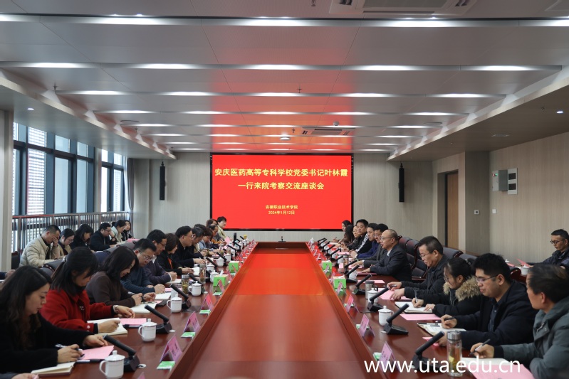 本网讯(办公室通讯员 马陕珊)1月12日下午,安庆医药高等专科学校党委书记叶林霞一行来亚星游戏网考察交流。学院领导班子成员出席会议,相关部门负责人参加会议。会议由党委书记李方泽主持。