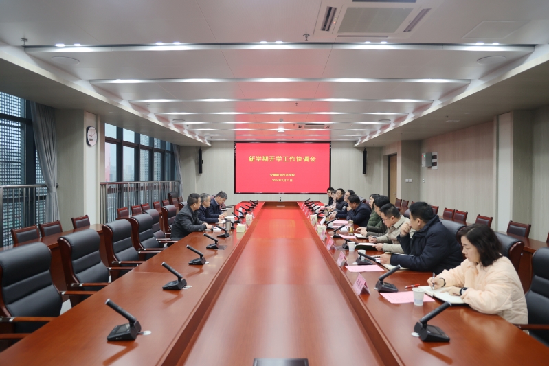 本网讯(办公室通讯员 张仁捷)2月21日上午,学院召开新学期开学工作协调会,学院领导盛鹏、杨林国、宣岩松出席会议,相关部门主要负责同志参加会议,会议由党委副书记、院长盛鹏主持。