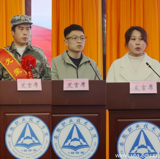 大会现场,预定新兵们身着迷彩军装,肩披绶带、胸戴红花,精神抖擞,展现出安职青年“报党报国报家乡” 高昂士气。仪式在嘹亮的国歌声中拉开帷幕。宣岩松代表学院向即将步入军营的新兵们表示热烈祝贺。他勉励大家要牢记使命,坚定理想信念,持续努力学习,不断提升综合素质;要坚持刻苦训练,不断增强个人本领;要从严自我要求,成为遵守纪律的模范,在军队这个大舞台上施展才华,在军营这个大熔炉里淬炼成钢,结合所学专业在军队建功立业,书写绚烂、无悔的青春篇章。