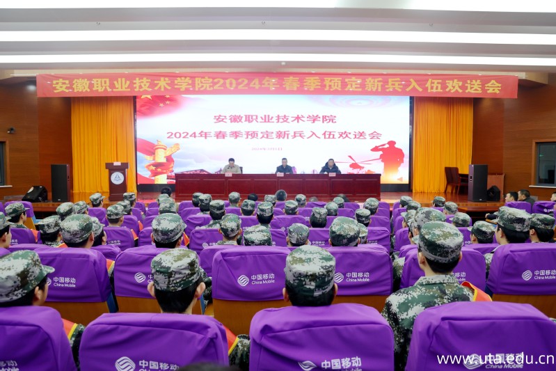 本网讯(学生处通讯员 古丽仙)筑梦军营,光荣启程。3月5日下午,学院举行2024年春季预定新兵入伍欢送会。学院党委委员、副院长宣岩松出席会议,保卫处负责人、各二级学院党总支负责人、辅导员代表、家长代表及61名预定新兵参加本次活动。