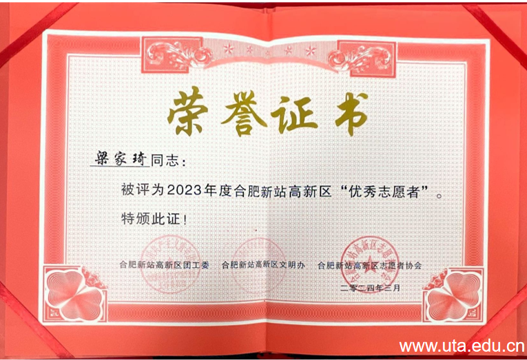 本网讯(团委通讯员 吕玥)近日,由新站高新区团工委、新站高新区新时代文明实践中心、安医大一附院北区、新站高新区志愿者协会主办的“爱心同行 志愿新站”2023年志愿服务表彰暨2024年学雷锋在行动启动仪式成功举办,亚星游戏网青年志愿者联合会获得“2023年度新站高新区志愿服务先进集体”称号,会长梁家琦被评为2023年度合肥新站高新区“优秀志愿者”称号。