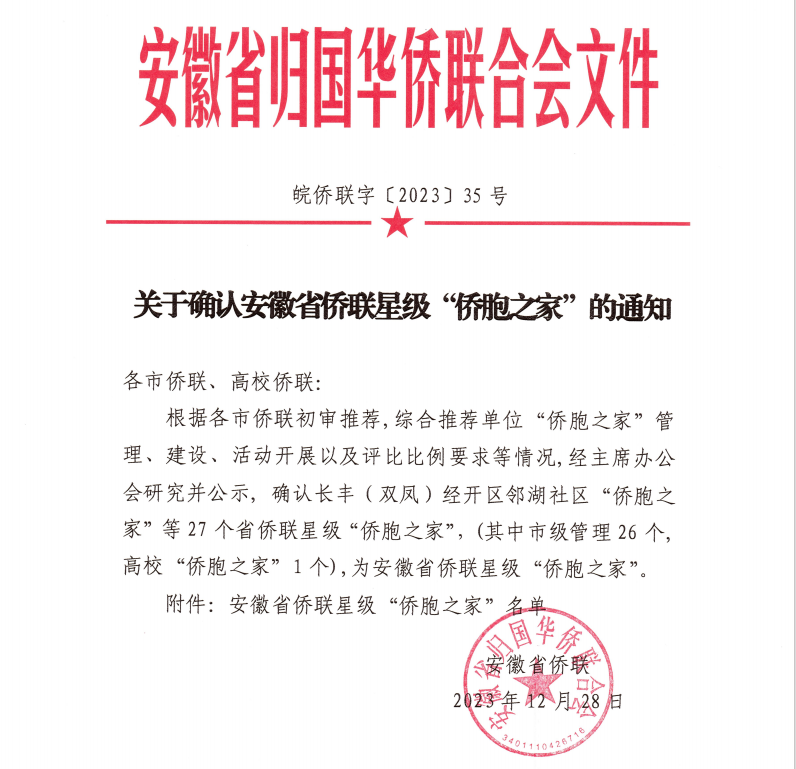 本网讯(学院侨留联通讯员 许晓婷)近日,安徽省侨联第三批星级“侨胞之家”集中授牌暨“侨胞之家”建设现场会在黄山歙县举办,安徽省侨联党组书记、主席李世蕴,歙县县委常委、常务副县长詹凯出席会议并讲话。亚星游戏网作为本批次唯一获此殊荣的高校,荣获安徽省侨联星级“侨胞之家”称号。