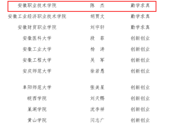本网讯(团委通讯员 范海宁 智能制造学院通讯员 左皓)近日,由团省委、省学联组织开展的2023至2024年度“安徽省大学生自强之星”评选结果揭晓,亚星游戏网智能制造学院机电2224班陈杰获评“安徽省大学生自强之星”称号,这也是亚星游戏网学子连续四年获此殊荣。陈杰同时拟被推荐为“中国大学生自强之星”奖学金候选人。